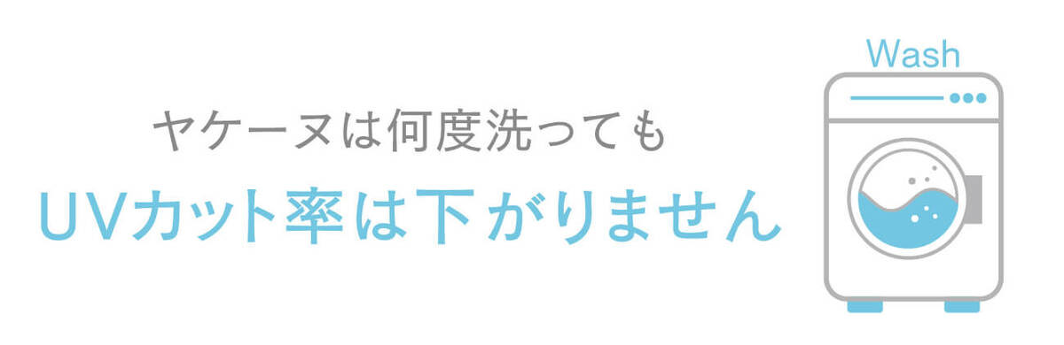 ヤケーヌは、安心・安全の日本製高機能糸を使用し、生地(糸)自体にUVカット効果のあるチタンを練り込んでいます。後加工ではありませんのでお洗濯しても効果は半永久的に持続します。