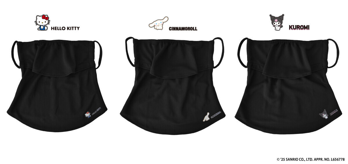 ラインナップは、ハローキティ、シナモロール、クロミの全3種。それぞれのキャラクターらしさが感じられる可愛いワンポイント入りで、日差しの強い季節も、お気に入りのキャラクターと楽しく過ごせるフェイスカバーです。