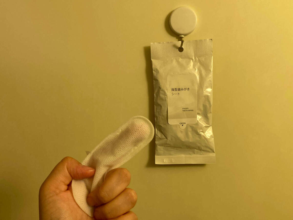 夜行バスや飛行機など移動中に便利。指にはめて軽くこするだけで口の中がさっぱり。初めて使った時は「応急処置程度」と思っていましたが爽快で感動!以来、ポーチに常備しています。