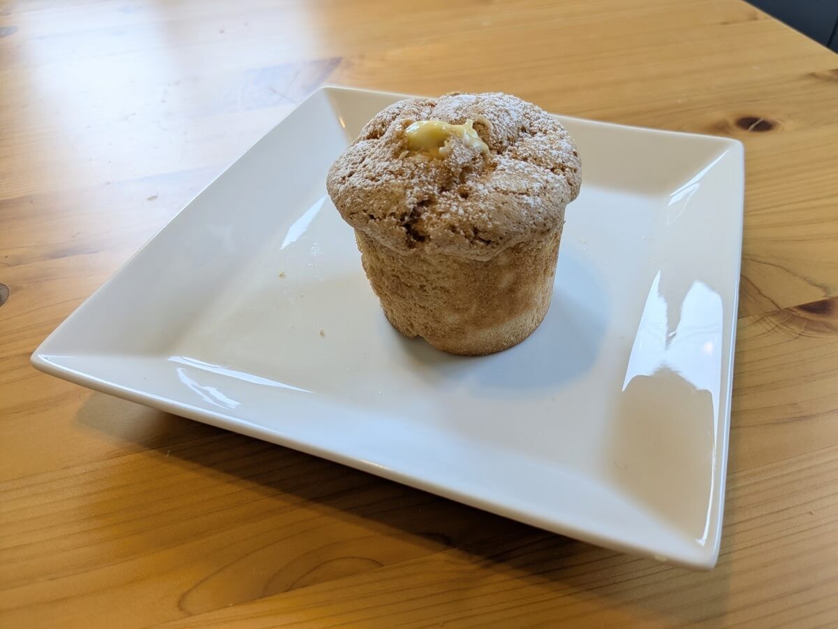 上のクッキー生地がサクサクで美味しいけど、下半分のパン生地が多少パサついているのが気になりました。