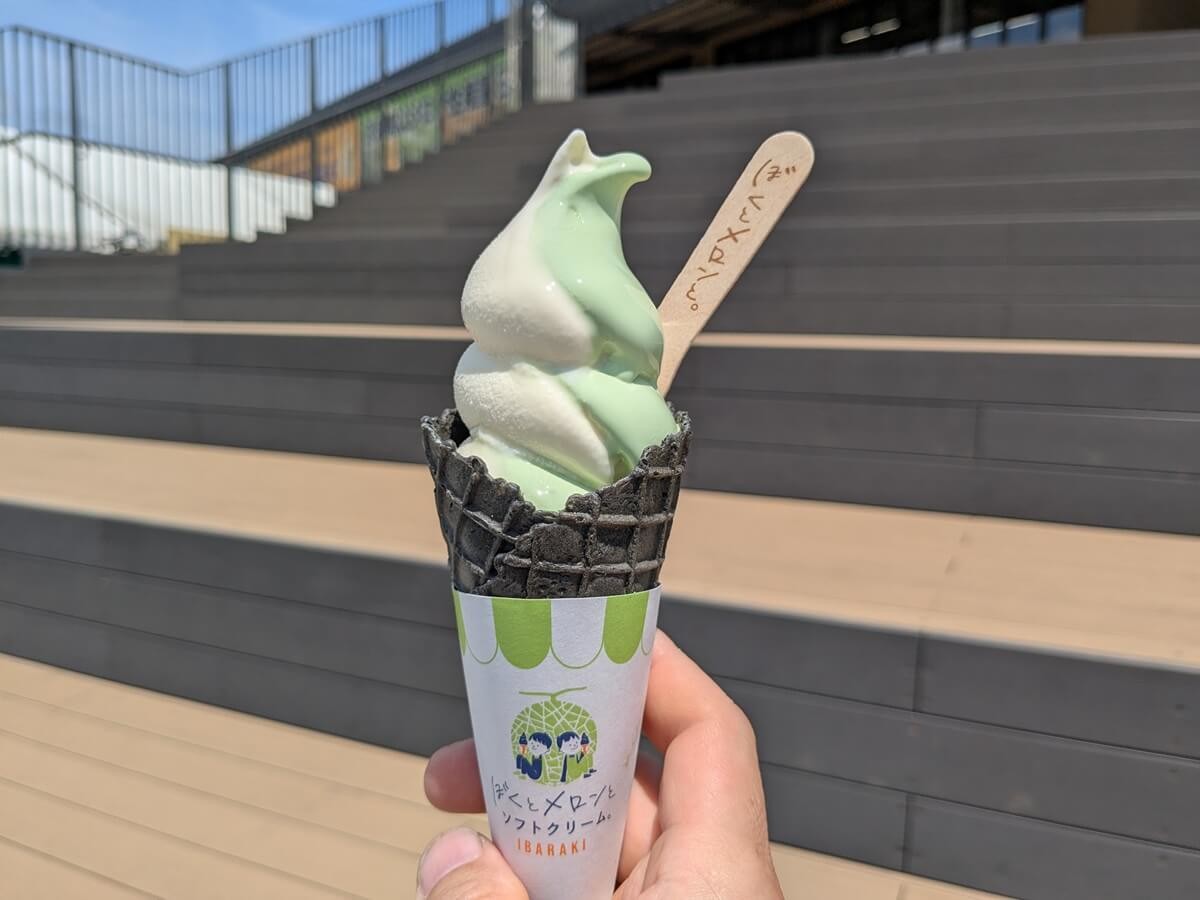 今回は、その道の駅常総内にあるメロンパンの超人気店『ぼくとメロンとベーカリー。』と冷たいスイーツを楽しめる『ぼくとメロンとソフトクリーム。』を紹介します。
