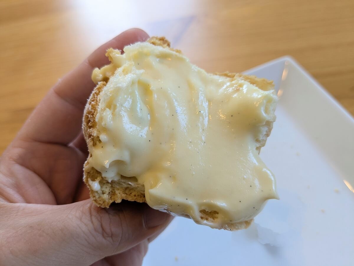 しかし、これだけ溢れんばかりのカスタードでも甘さは控えめなため、意外にもあっさりとした食べごたえ。油断すると一人で何個でも食べてしまいます。