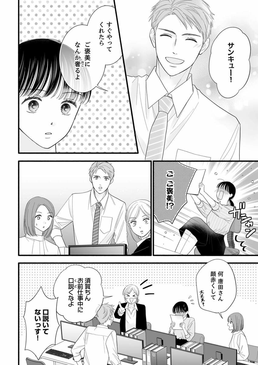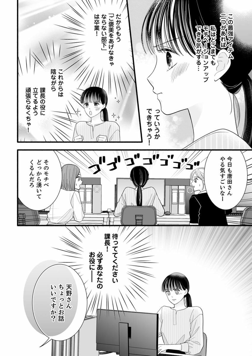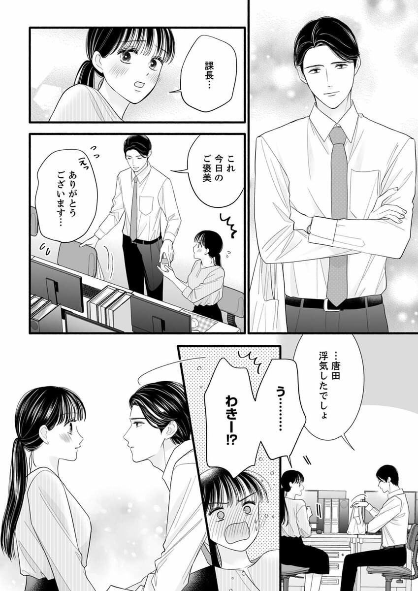 【漫画】積極的な同期に塩系上司が嫉妬!?「俺以外の奴からご褒美貰っちゃダメ」とんでもないことを言い出して…【塩系上司が甘すぎる⑧】