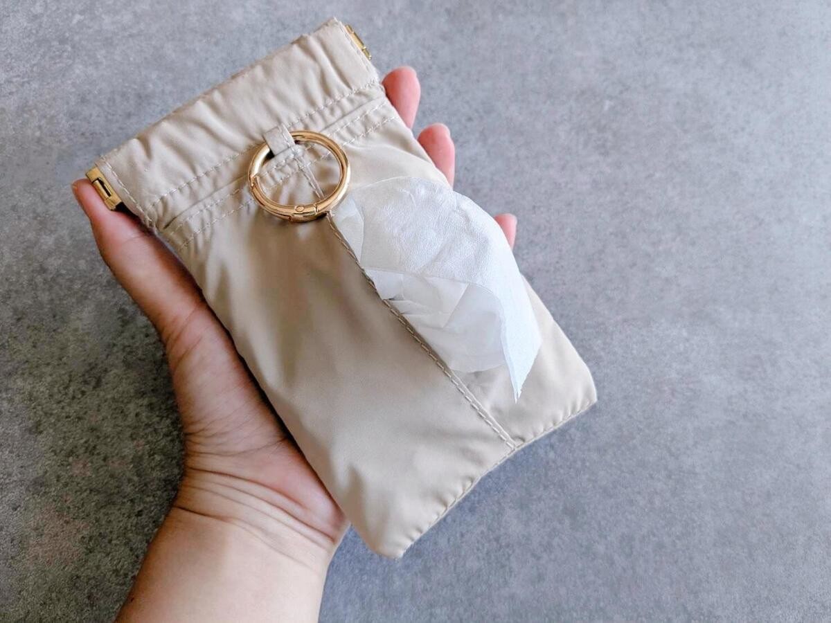 バッグの中でティッシュがバラバラになることもありません。1つで2役、ありがたい〜!