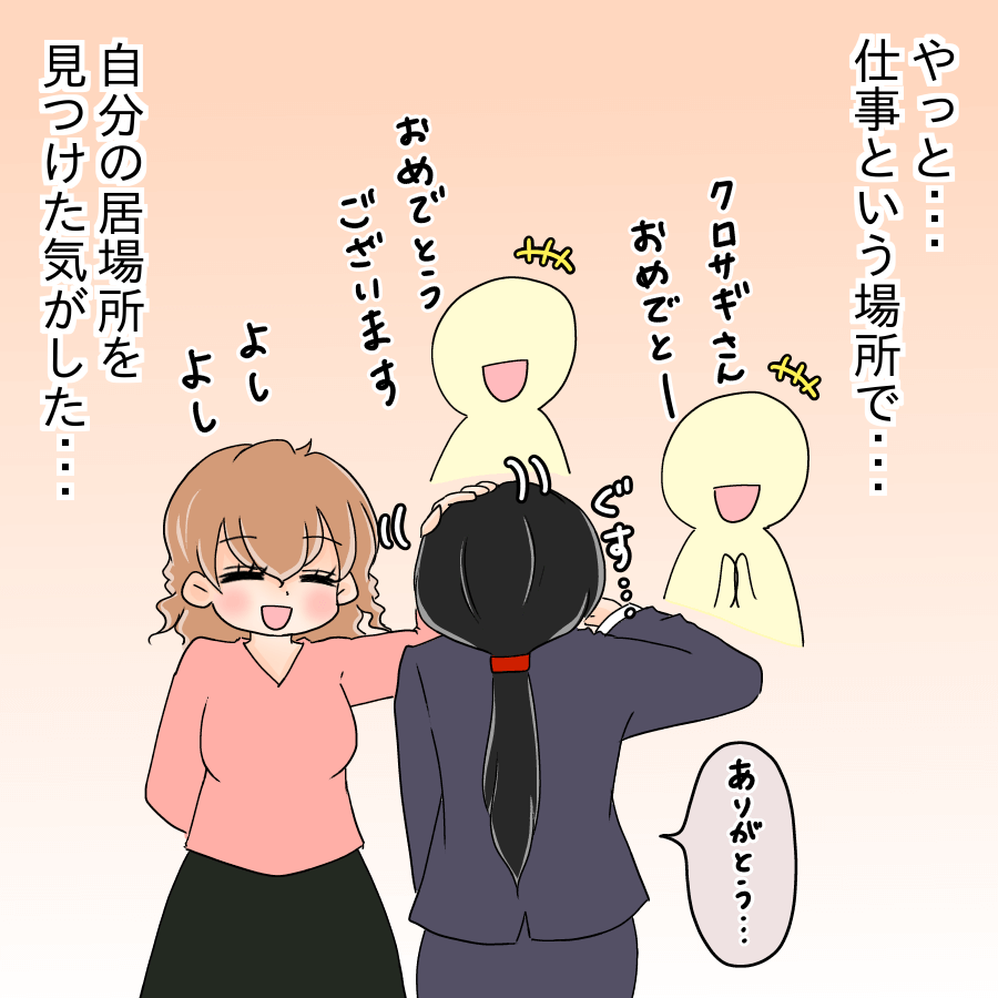 一方、クロサギさんも同様なコンプレックスがありましたが、彼女の場合は仕事に邁進。会社に認められることによって自信がついたのに、よりによってまみちゃんのそんな発言を聞いてしまうなんて。