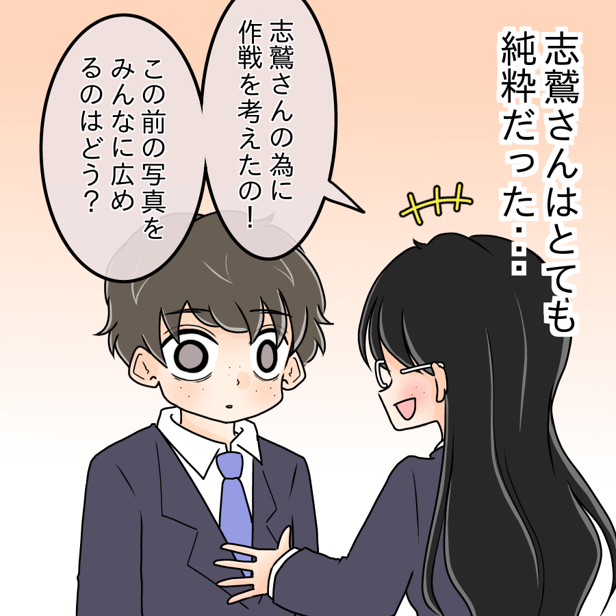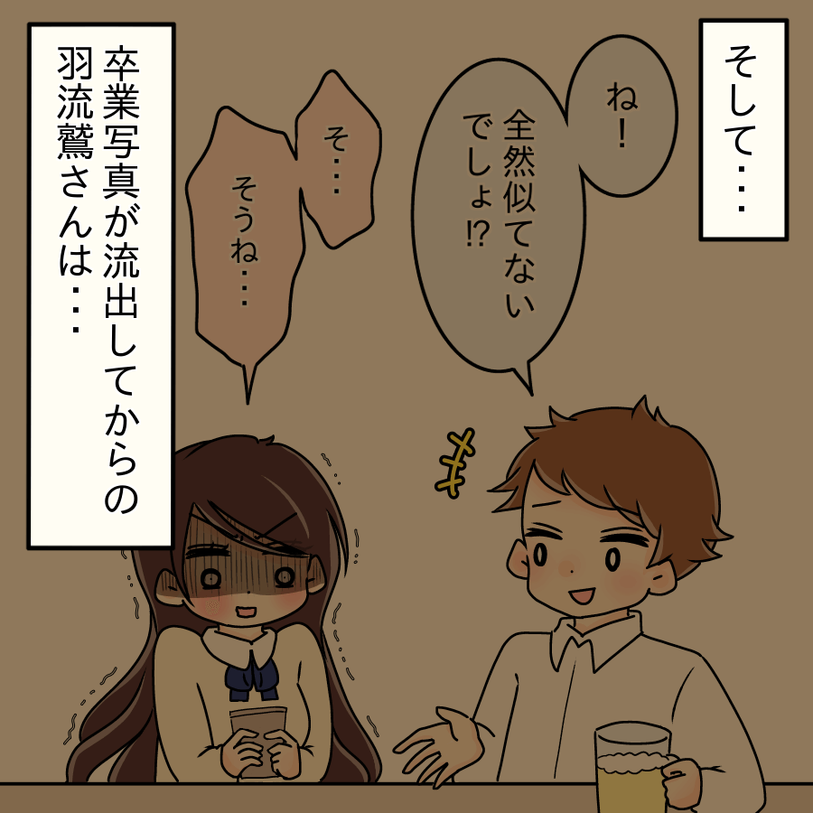 以来、まみちゃんの失脚を狙っていたクロサギさん。なんと、10万円かけてまみちゃんの整形前の卒アル写真をゲット!まみちゃんをストーカーしていた志鷲くんをそそのかして、ばら撒いてしまいます。