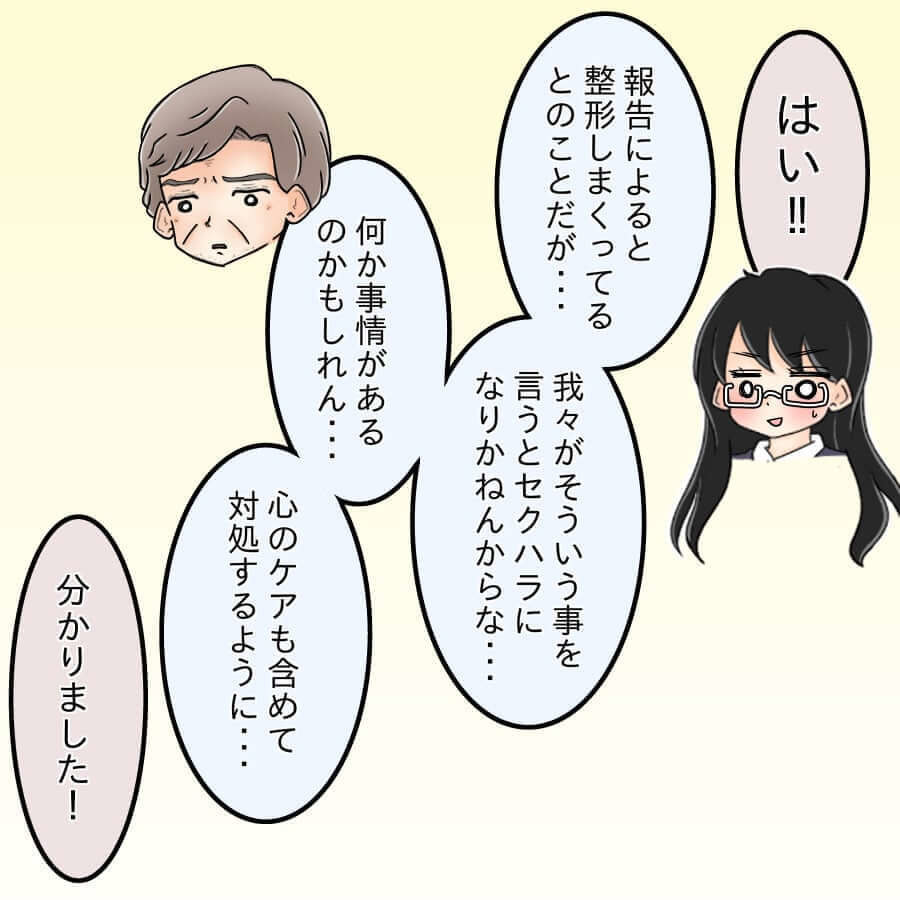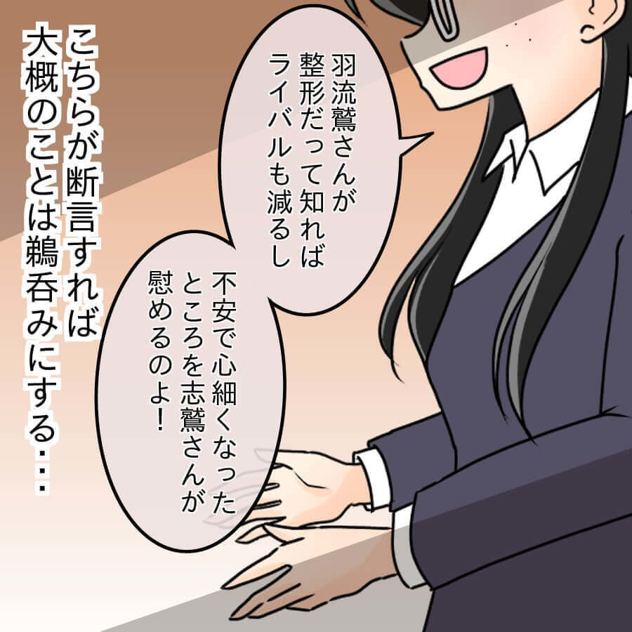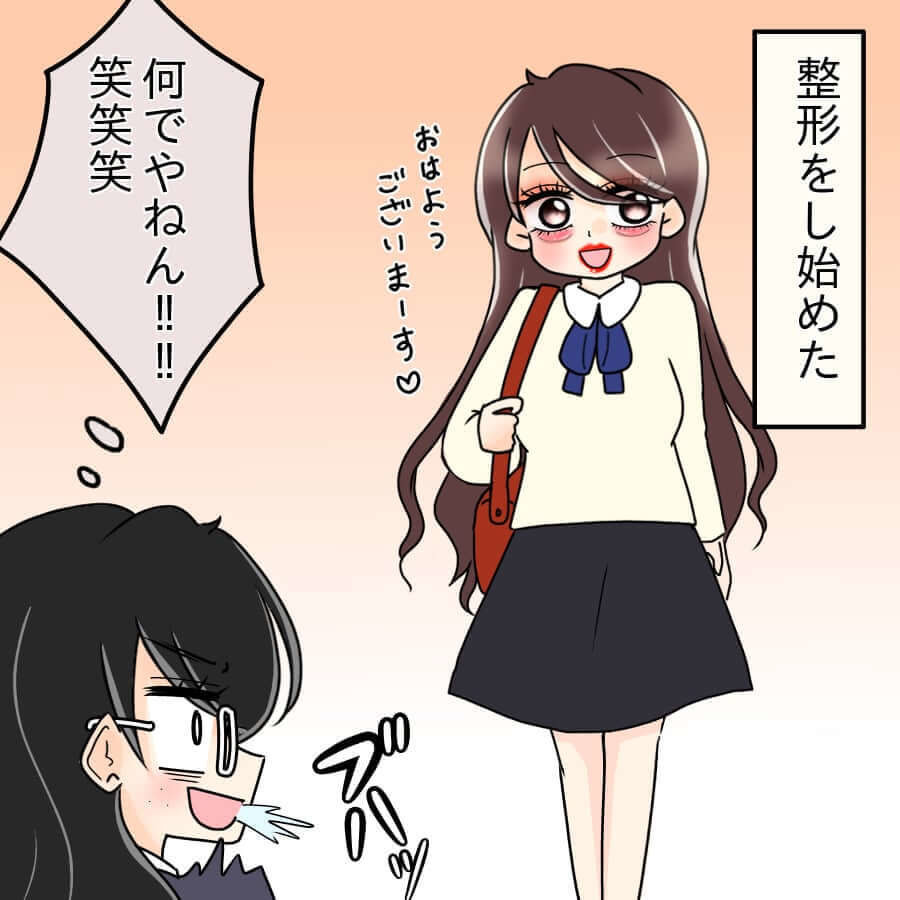 異動してきた女子2人人気への嫉妬に狂い、かつ整形前の写真が出回ったことで、まみちゃんが暴走。「もっときれいにならなきゃ!」という思いで整形を重ねていくことに。それは行き過ぎてしまって、周囲からますます浮いてしまったのでした。