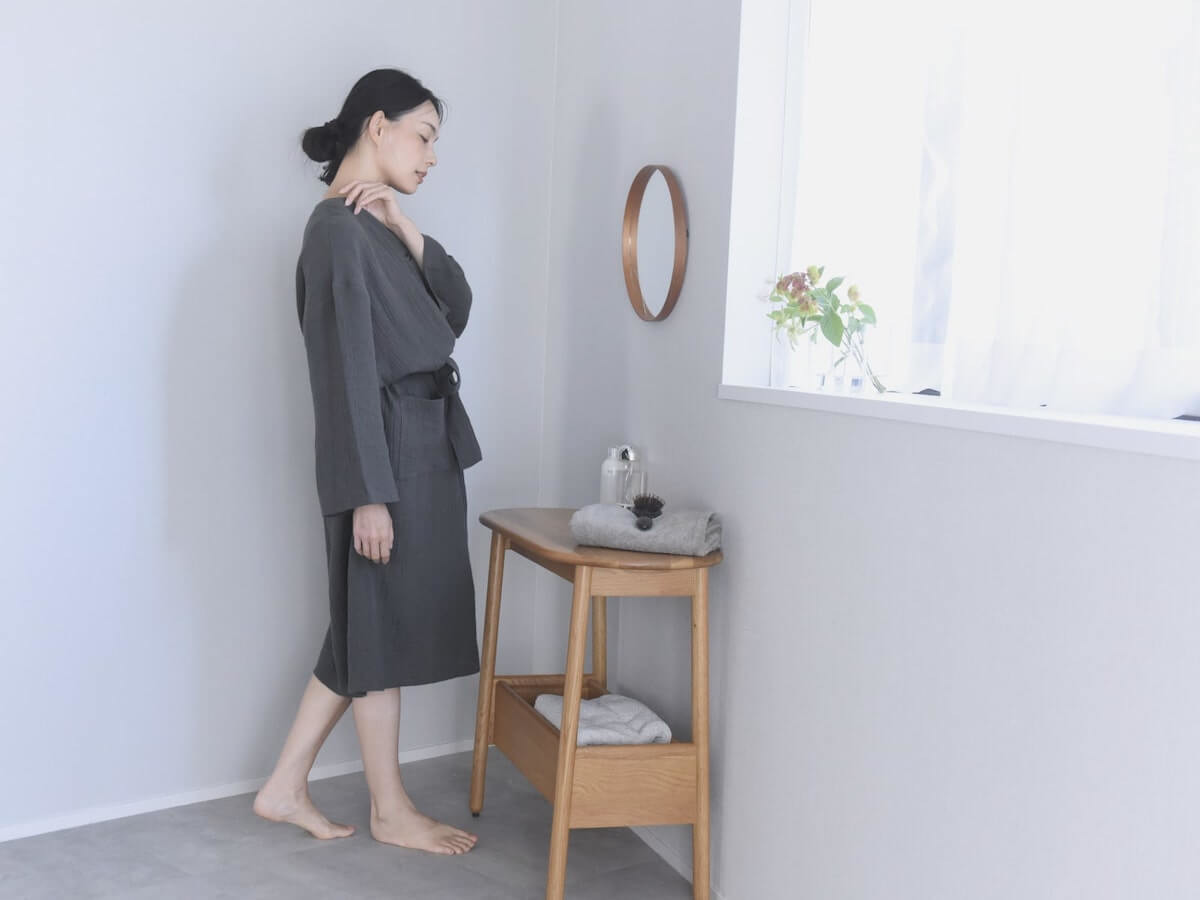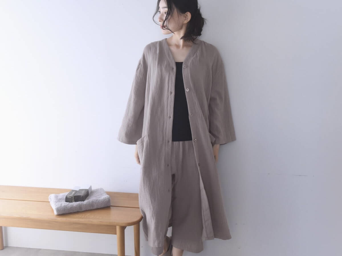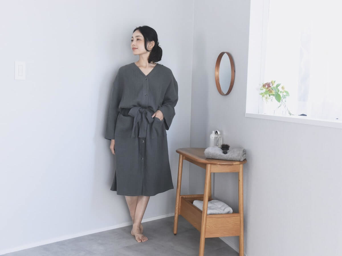 夏はお風呂で熱くなった体のクールダウンに、秋冬は湯冷め防止に着ても◎です。