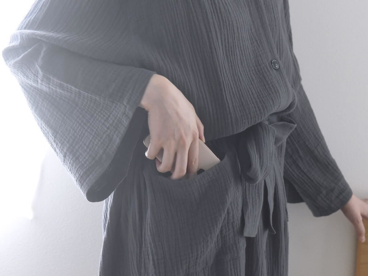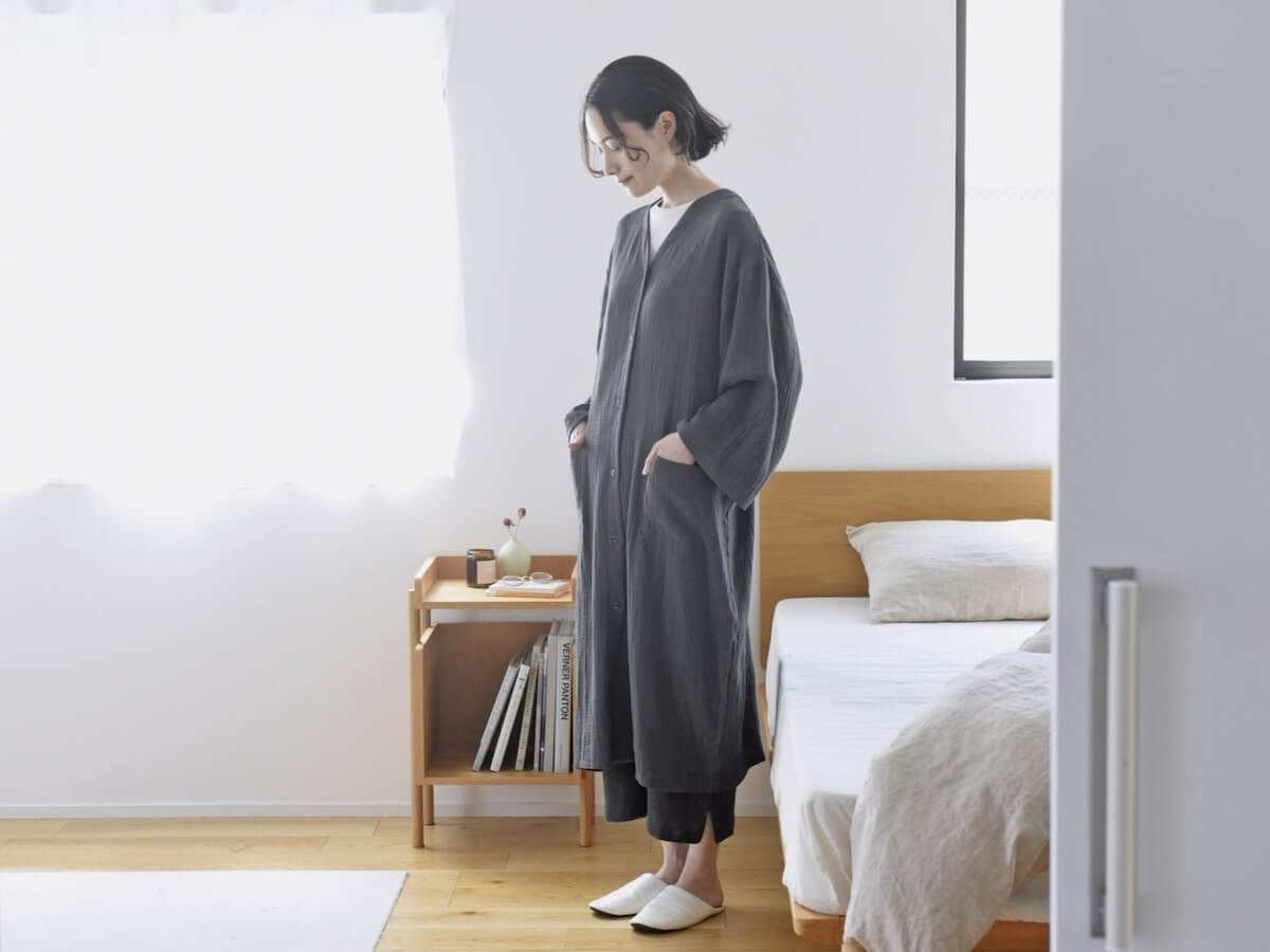 汗が引くまでのクールダウンや、湯冷め防止のためにバスローブとして着るのはもちろん、お部屋でゆっくり過ごすときのリラックスウェアとしても活躍しますよ。