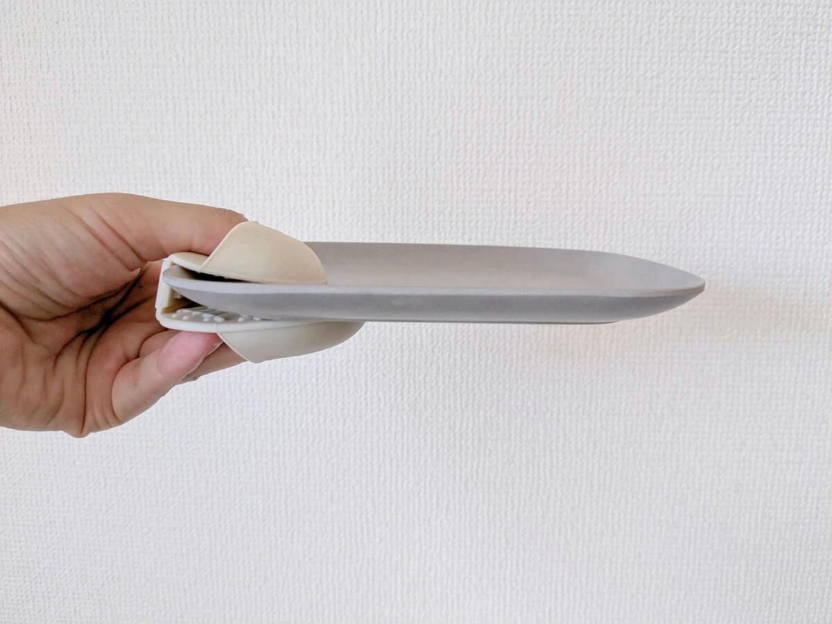 薄いのでドキドキしながら熱々のオーブン皿を持ってみましたが、熱さはゼロ。ちゃんと熱が伝わらないように作られています。