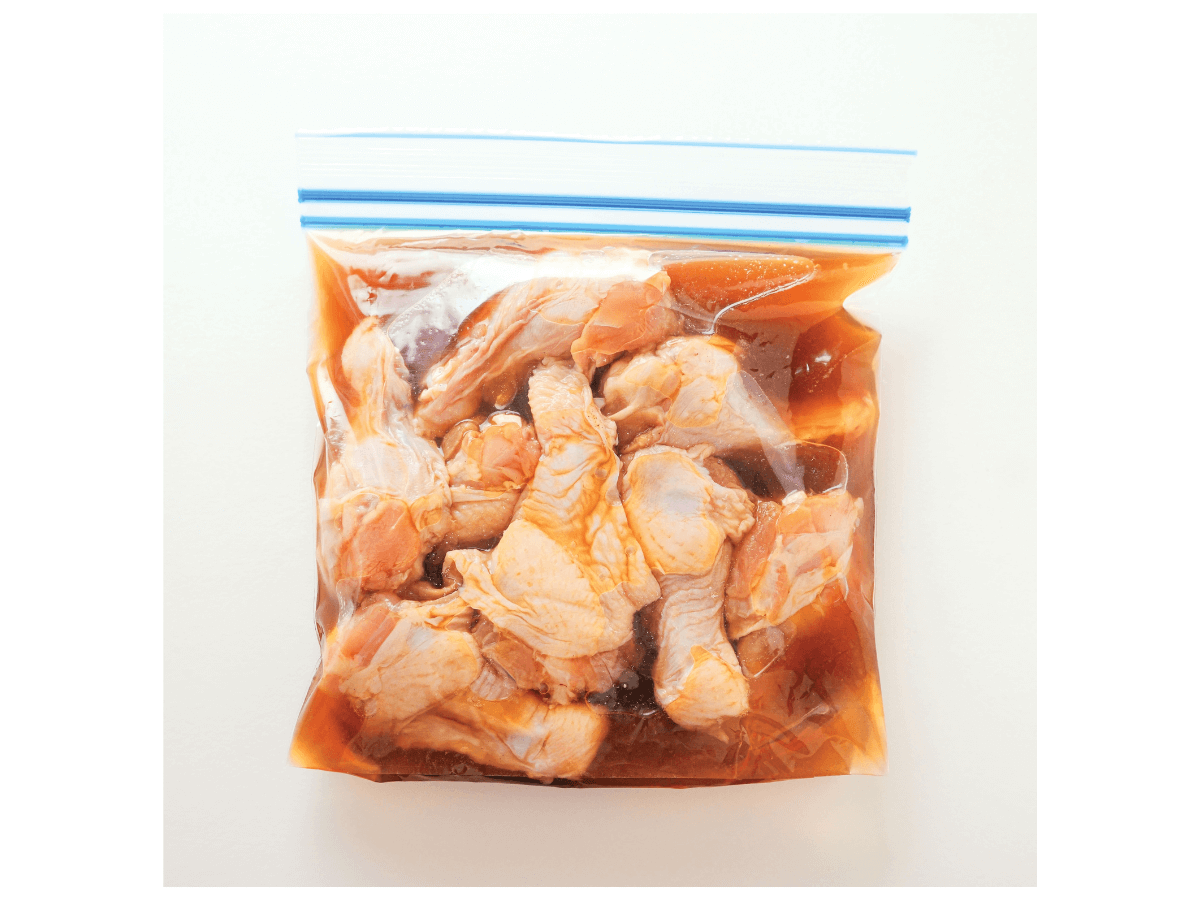 本書P.72に出てくる『鶏手羽元のさっぱり煮』のように、鶏手羽元を下味冷凍しておくと、使いたいときに15分ほど煮るだけで簡単メインも作れちゃう便利食材に。