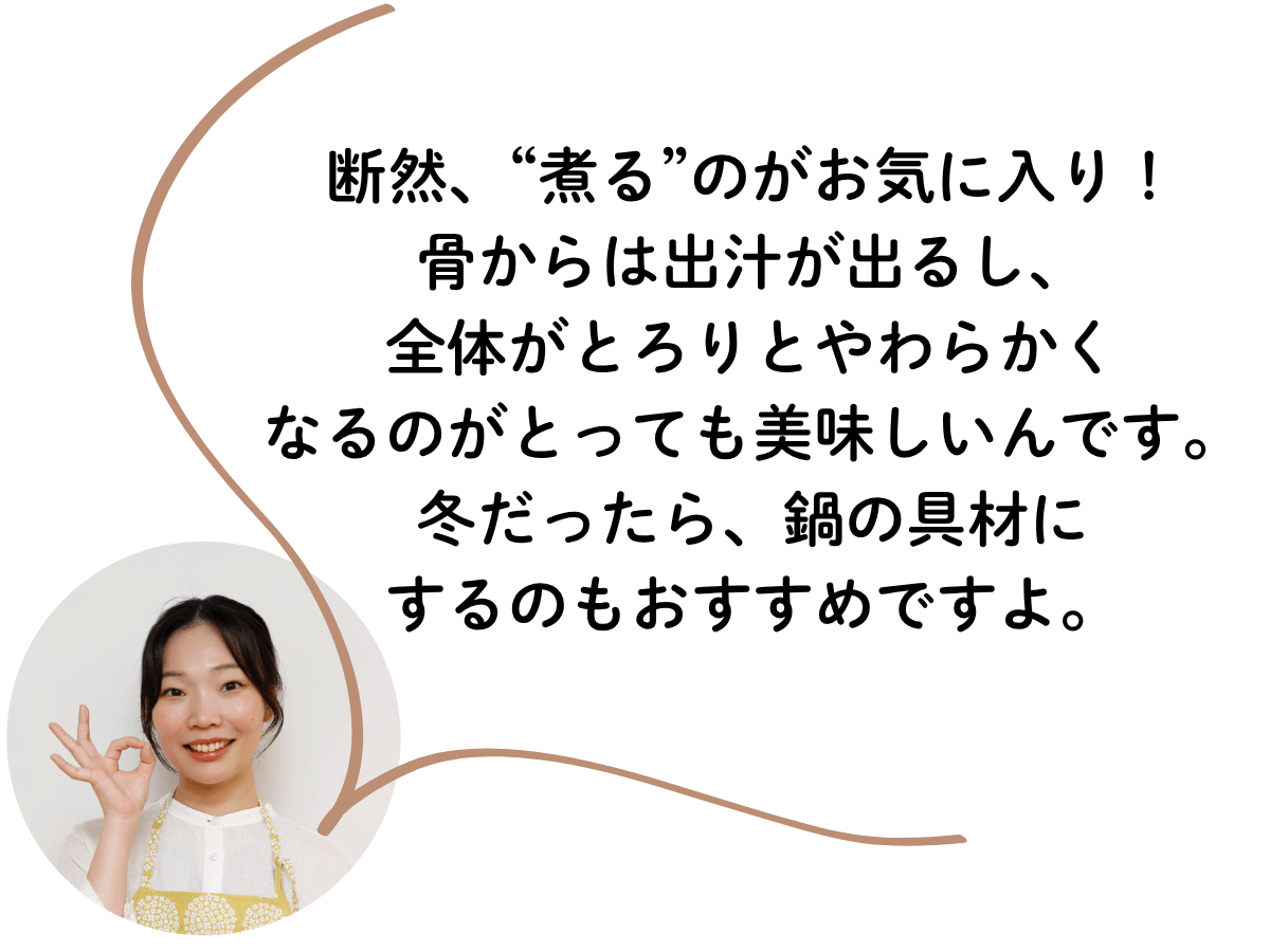 やわらかくて、骨から出汁と旨味が溶け出す骨付き肉は、煮たりスープにしたりする料理が向いているそうです!