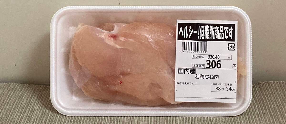②鶏むね肉(348g)330円(税込)
