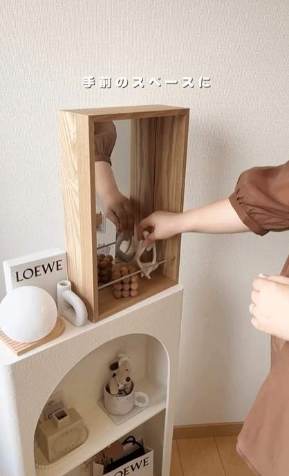 手前のスペースにフレグランスやヘアアクセを並べれば、インテリアとしてもおしゃれに映えますよ♪