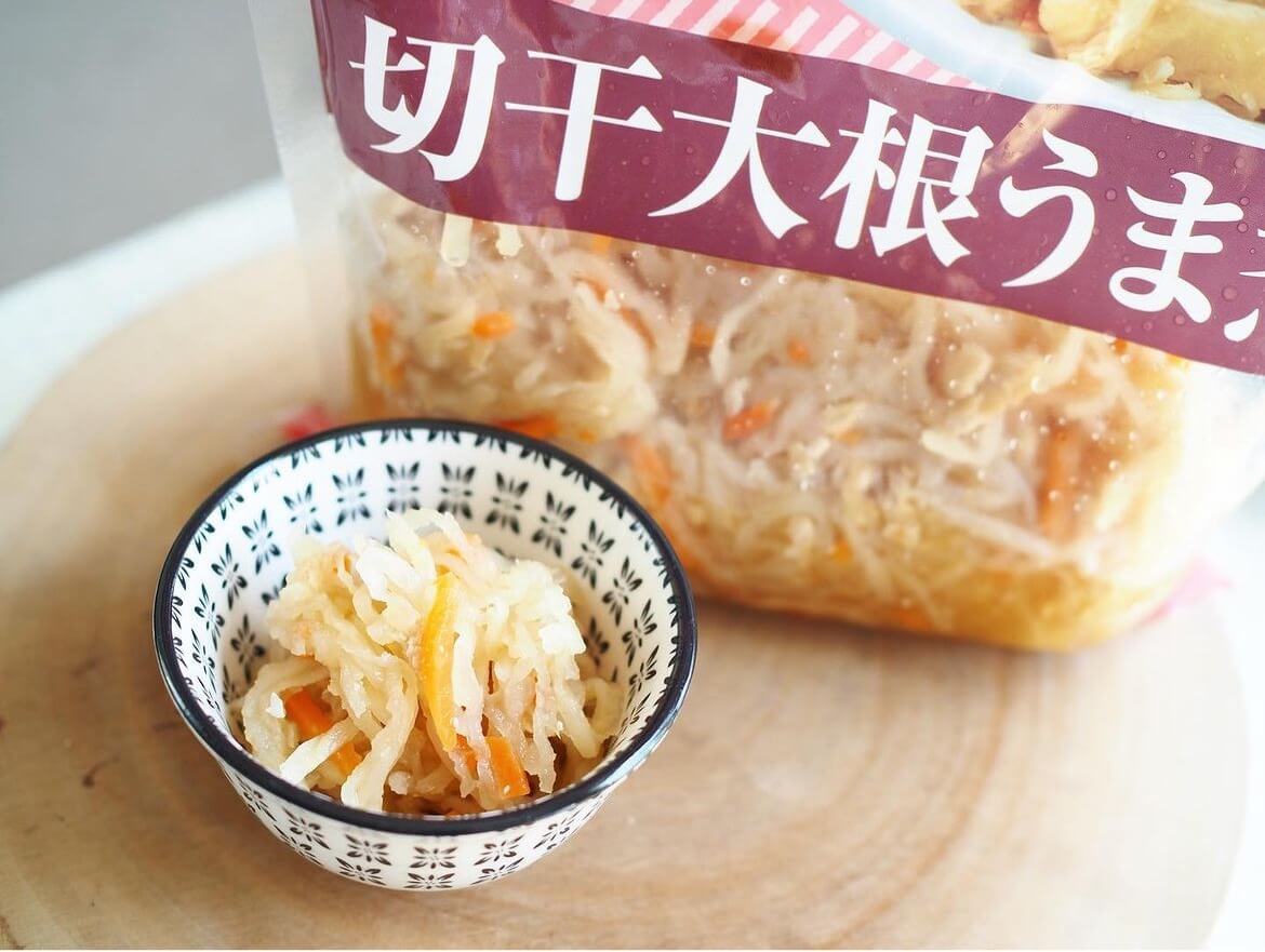 切干大根うま煮を作ろうとすると時間もかかりますが、味がよく染みたお惣菜パックなら忙しい毎日にもさっと出せて助かります。5人家族の我が家では、毎日大活躍であっという間になくなる1品です。