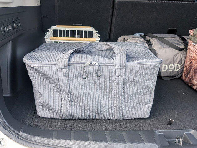 一緒に使う「丸ごと保冷バッグ」も折り畳めるので、一緒にスリム置き。