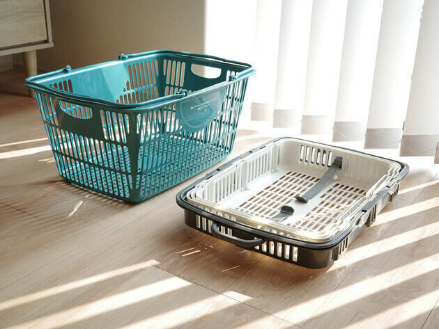 スーパーで使われているような一般的なカゴは、他の場所では使いづらく、かさばるから持ち運びにも不便。