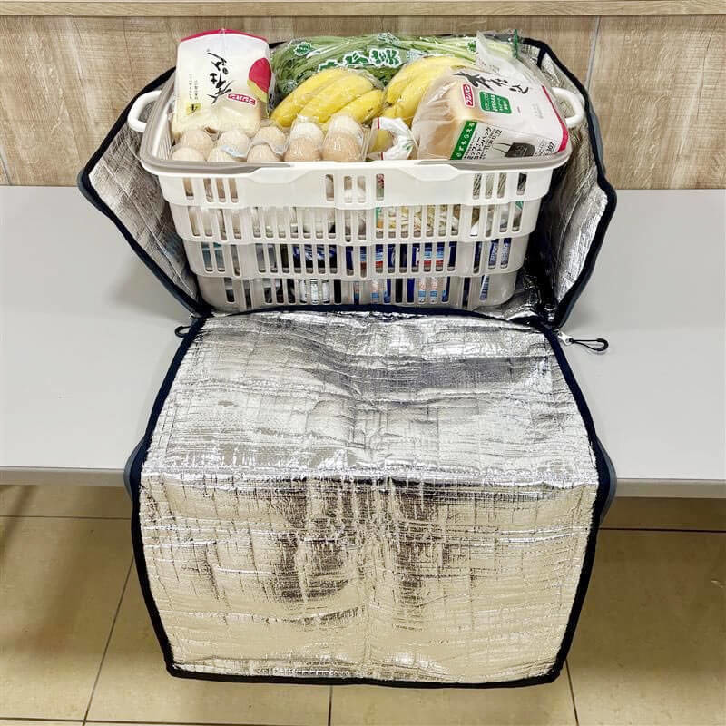 マイカゴの相棒と言えばコレ。レジカゴをまるっと入れられる保冷バッグです。