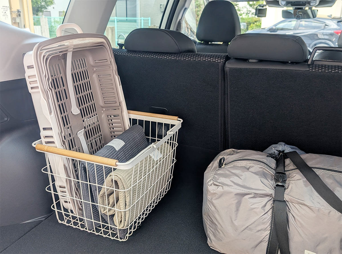 畳めるバスケットなら、車内置きっぱなしでもスペース削減