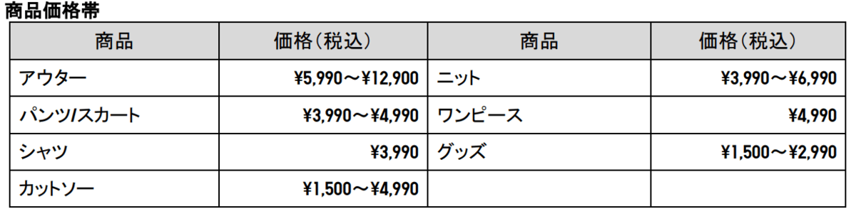 商品ラインナップ: ウィメンズ 14アイテム/メンズ 18アイテム/グッズ4 アイテム