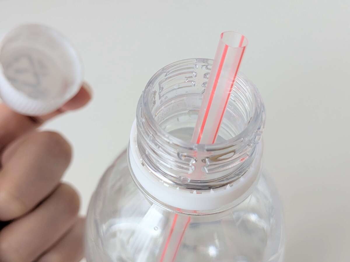 試しにキャップを開けてみると、何もしなくても勝手にストローが飛び出てきます。