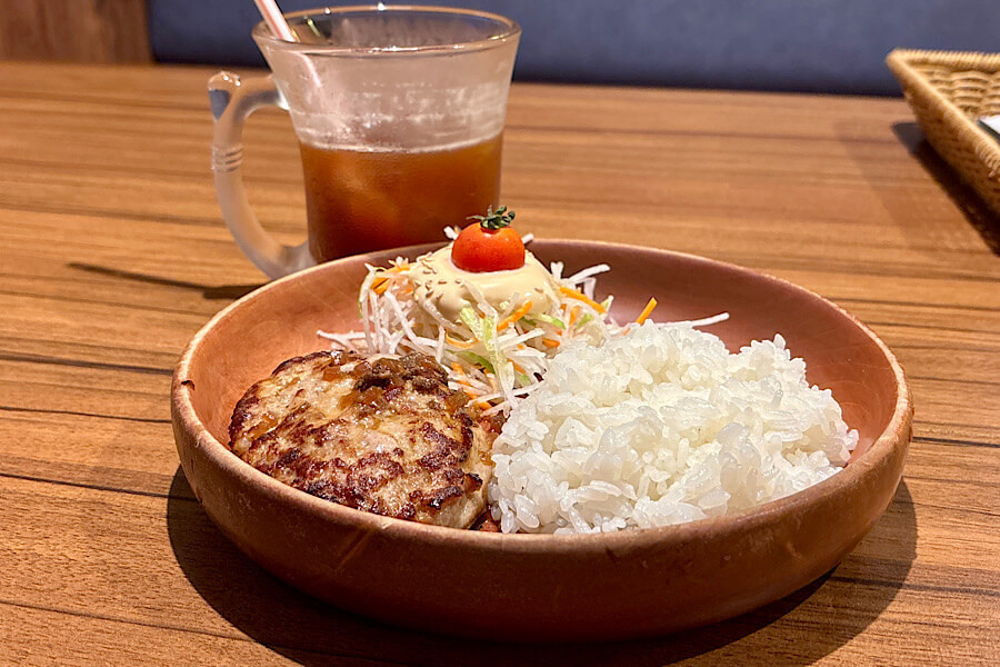 「ミニマムバーグディッシュセット」とアイスコーヒーが卓上に並べられて、いざ実食です。