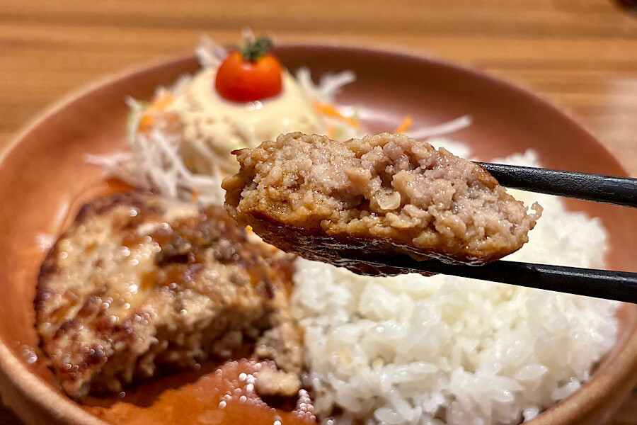 ハンバーグは100gと少し小ぶりですが、レギュラーと同じく柔らかくて、玉ねぎの甘みを生かした独自のソースが相変わらず美味しいです。
