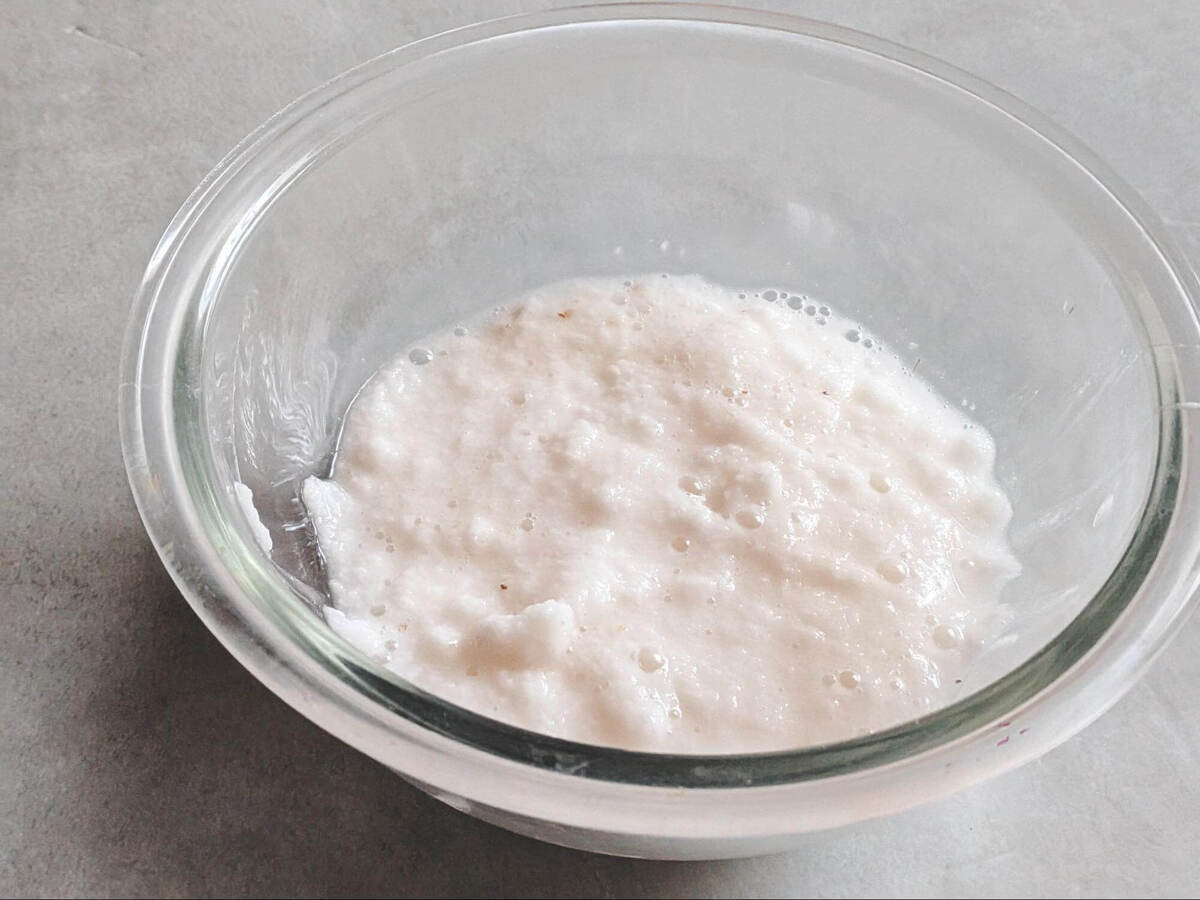 長芋は皮をむいて、すりおろしてください。次に生地を作るので、大きめのボウルにすりおろしておくと、洗い物が少なく済みますよ。