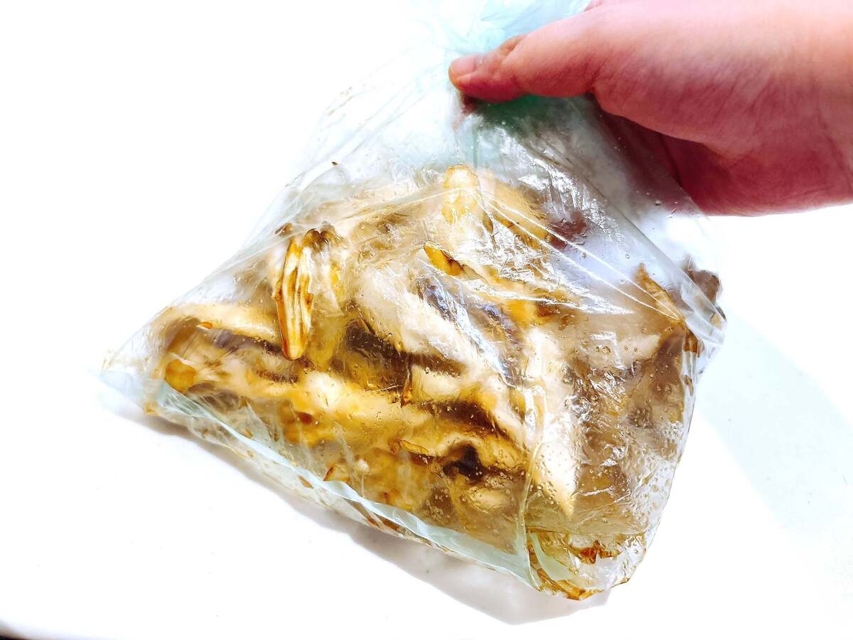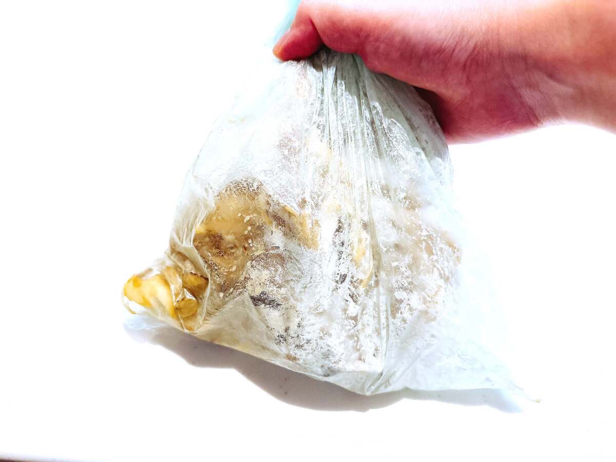 その後に片栗粉をまぶしましょう。ポリ袋を軽く振るとまんべんなく粉を付けられました。