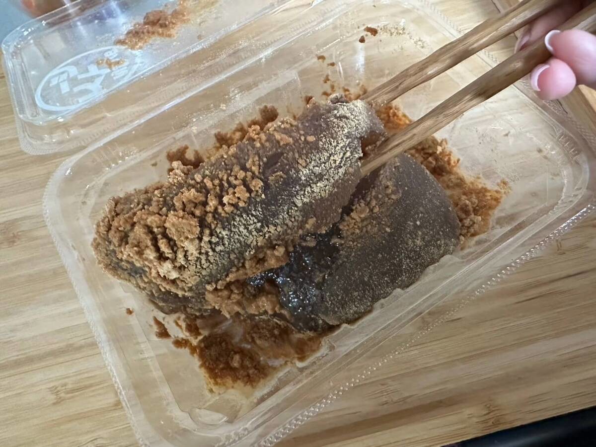 お箸で簡単にちぎれる弾力のわらびもちなので、一人で贅沢に食べるのもおすすめですよ。