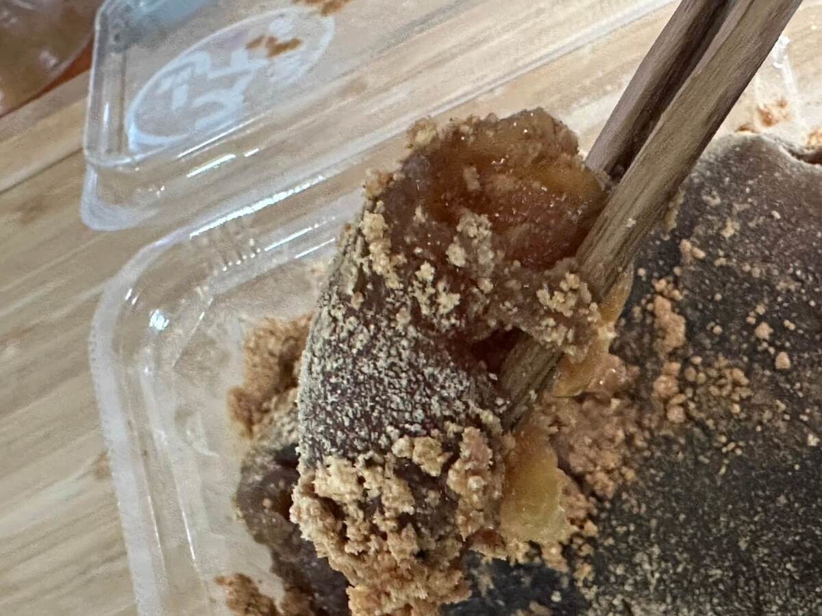 - 巨大サイズに驚く「お箸でつまんでわらびもち」