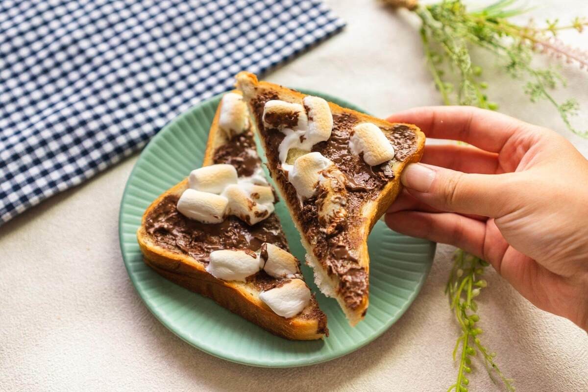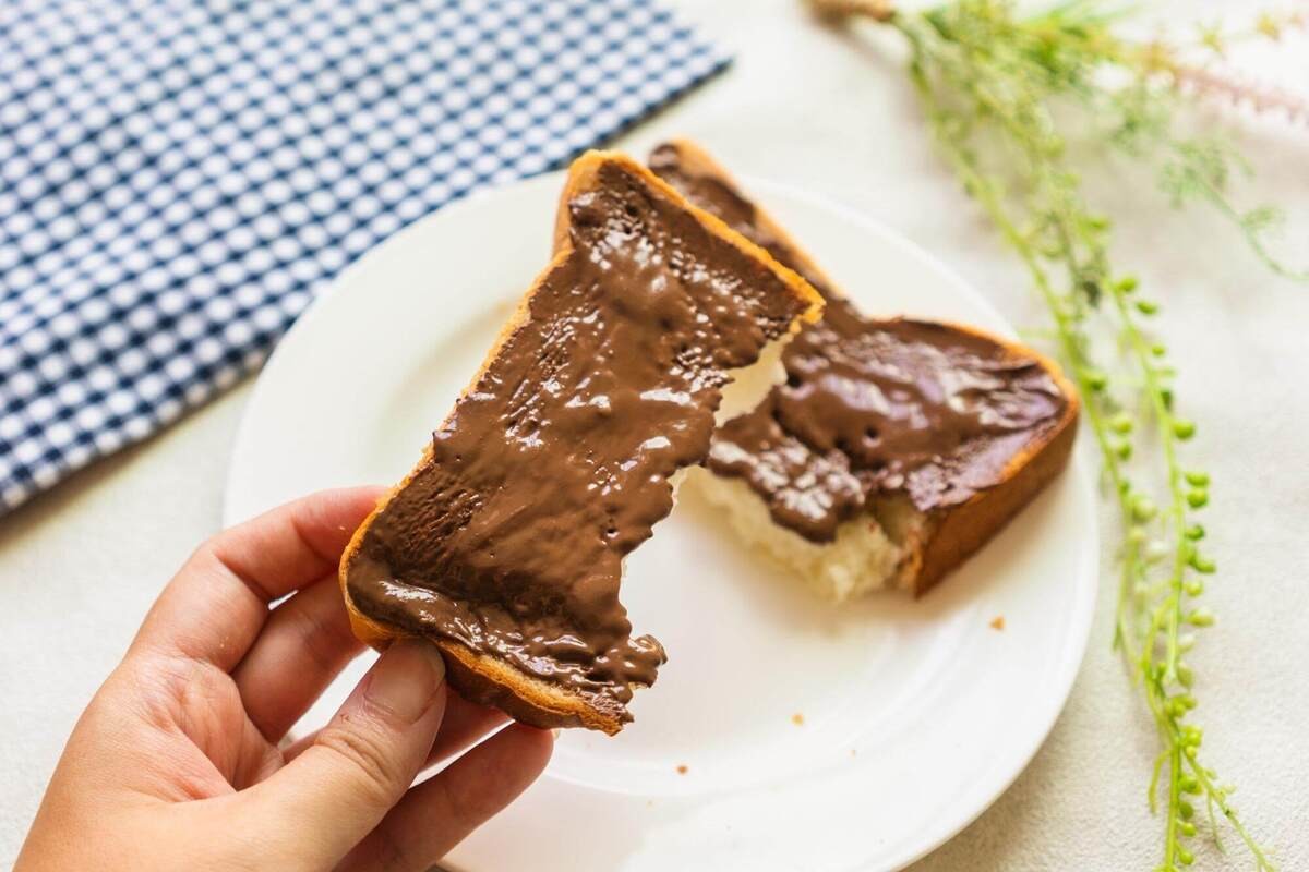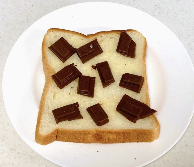 トースターから出して、溶けたチョコレートを食パンに塗り広げたら完成です。