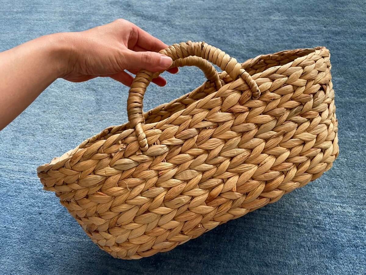 「ウォーターヒヤシンス 持ち手付 オーバル バスケット 小」と同様、見た目のかわいさは折り紙付きなのですが、いかんせん、ささくれ(トゲ)のような部分が手に当たるとチクッとして……。