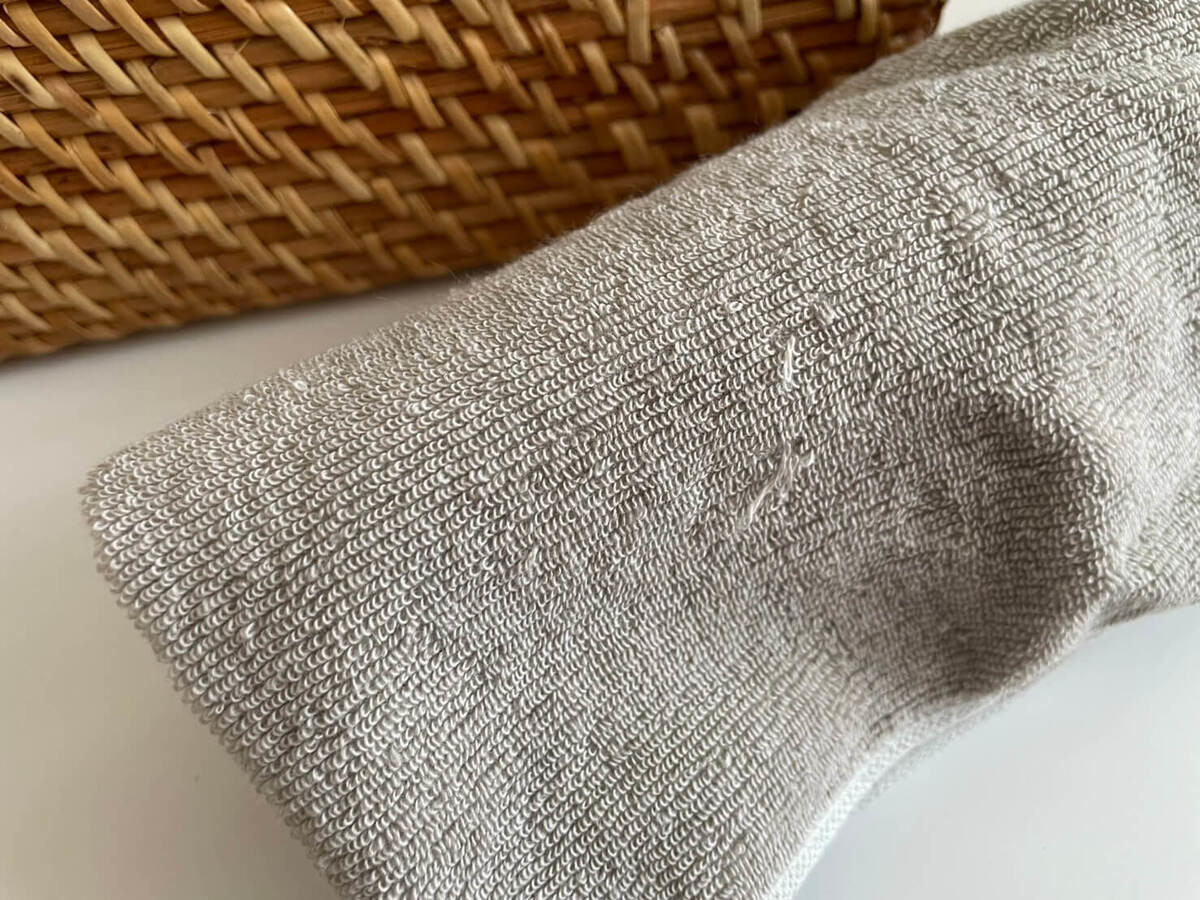 中に、同じく無印良品の「のびのびターバンタオル」を入れていたのですが、繊維が引っかかってパイル抜けしてしまいました(泣)。