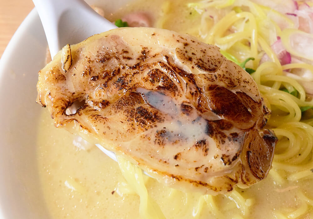 大判の鶏モモチャーシューは表面の香ばしさとともにとろけるような口当たり。昨年に引き続き、とっても美味しく仕上がっていますね。