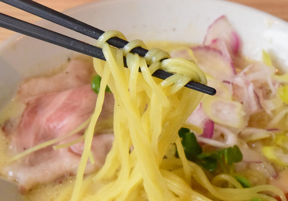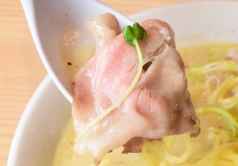 スープは、鶏と野菜の旨みが濃縮しクリーミーでポタージュのようです。夫が言うには「昨年の方が鶏白湯的なラーメンらしさが出ていた気がする」とのこと。私には味の違いはわかりませんが、わかる人にはわかる、味わいの変化があるようです。