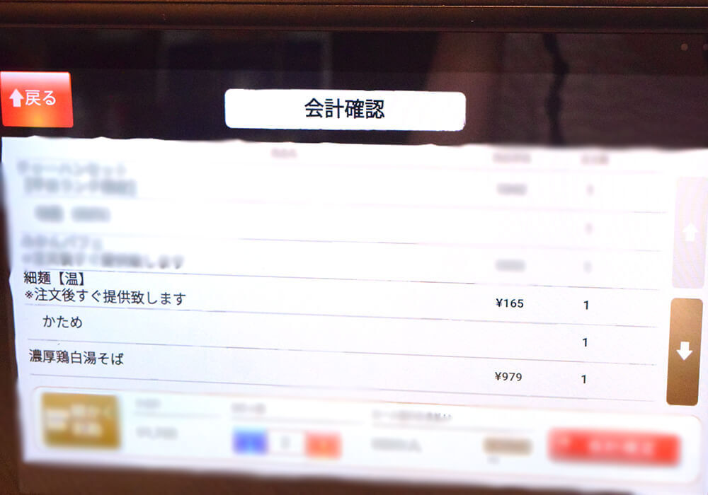 今回は夫とシェアしながら食べますので、替え玉(細麺)165円(税込)と共に注文しています。