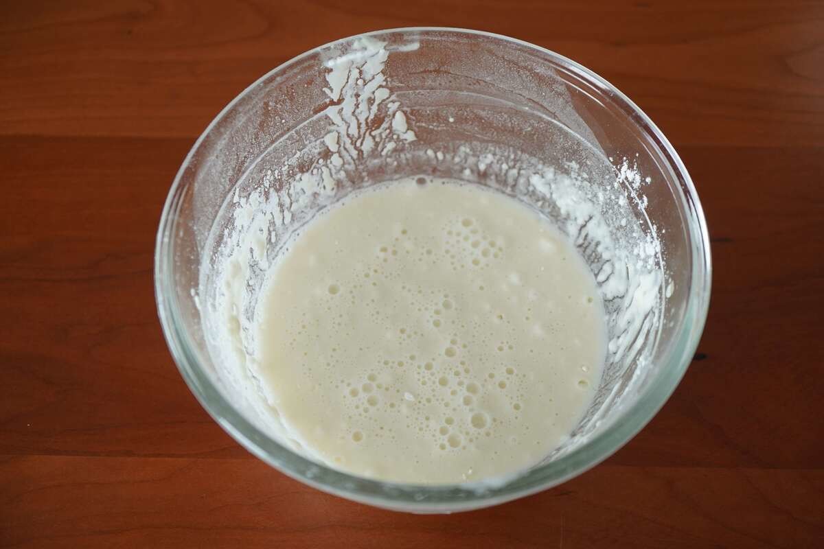 ボウルに衣の材料を入れてダマがなくなるまで混ぜます。