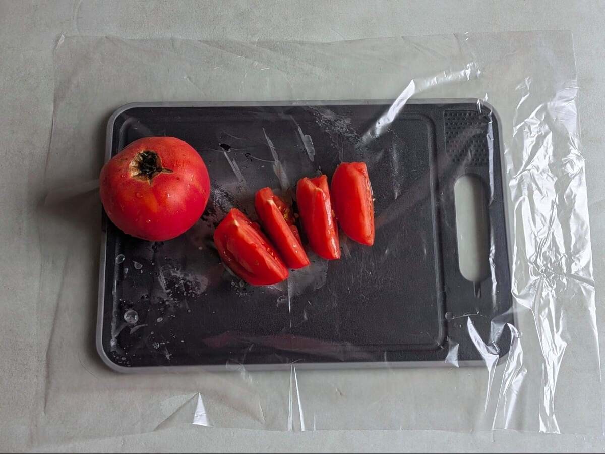 ただ、野菜をカットしてみると、包丁が触れた部分に切れ目が入ります。優しくカットするか、少量の食材のカットに使うのがおすすめです。