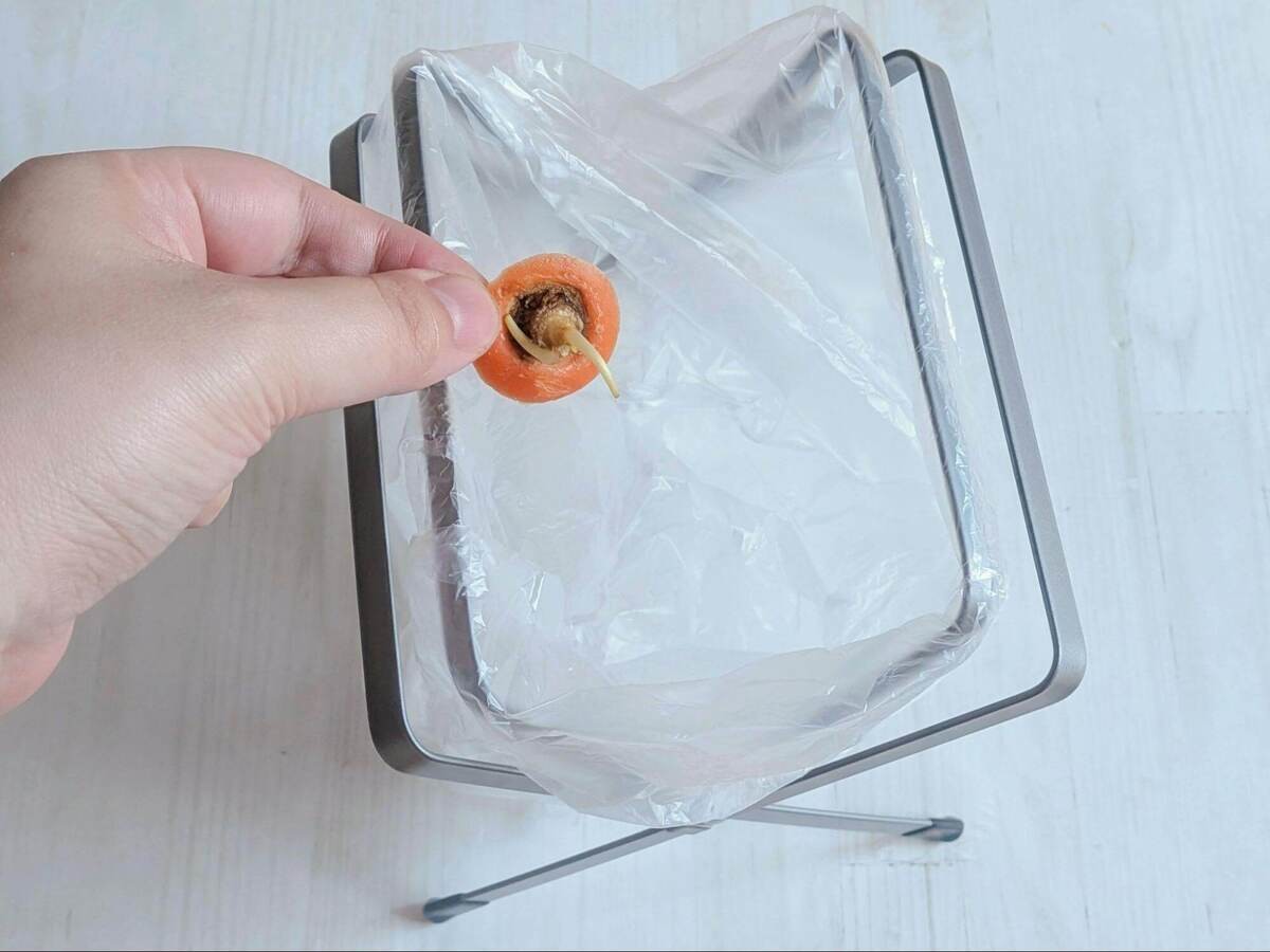 理由:三角コーナーだと場所をとるし汚れも気になるけど、これなら省スペースで袋ごと捨てられる!