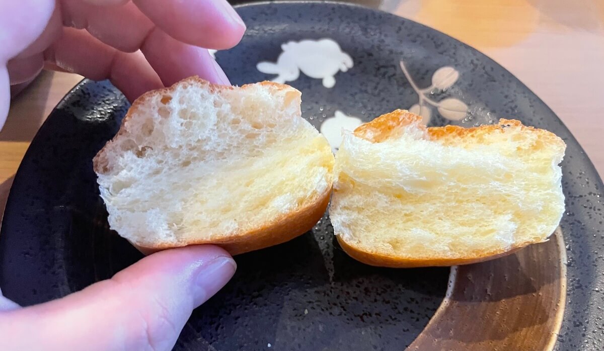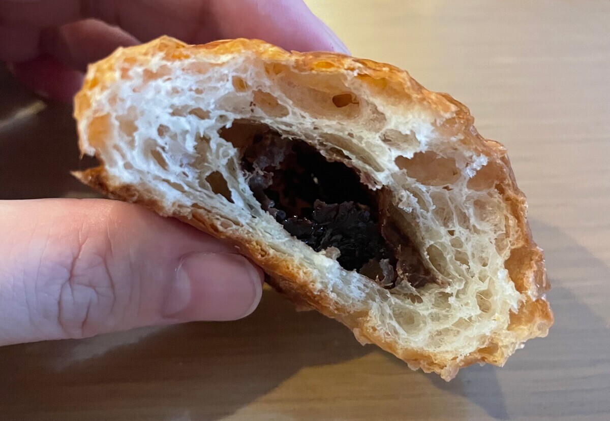 まず感動したのが食感の良さ。外側はサクッと軽くて香ばしく、内側はふんわり。食べるときにパリッと層がほどける感じがあって、まさに“パン屋さんの味”。