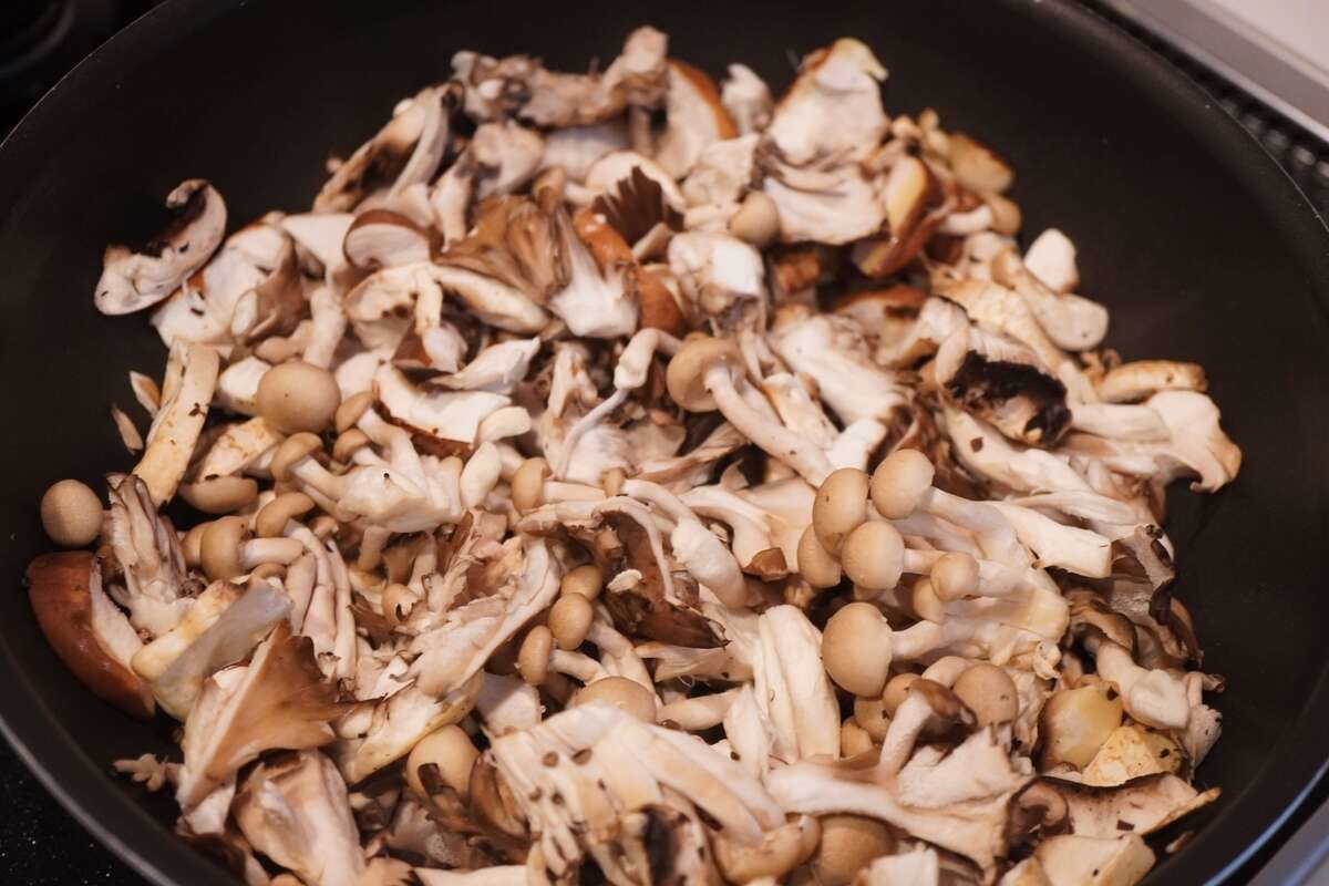 作り方③きのこを炒める