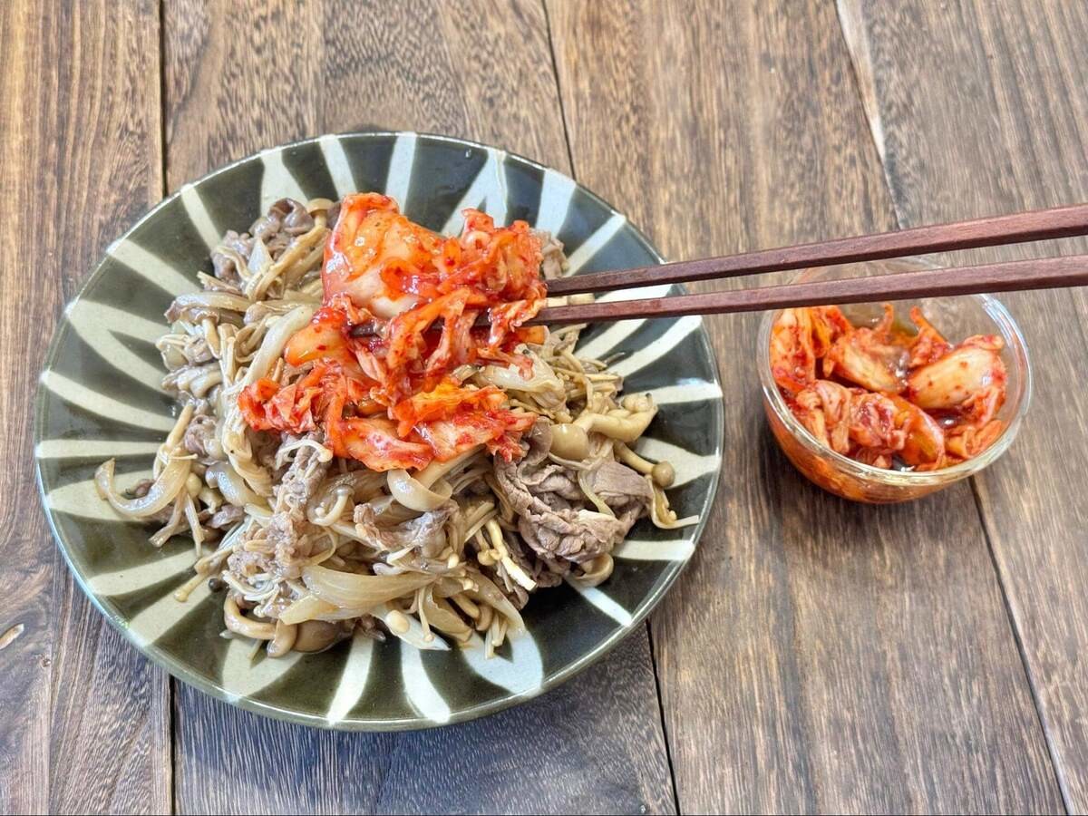 後のせしたキムチと一緒に食べると、フレッシュな酸味と辛みをダイレクトに感じられ、良いアクセントに。キムチ本来のシャキシャキ食感が楽しく、お箸が止まりません。