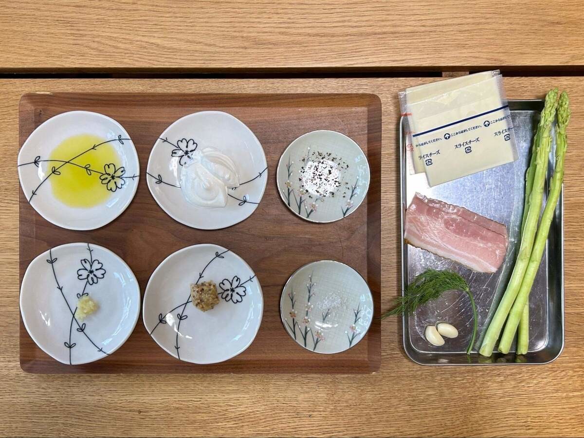 余裕がある方は、アスパラやベーコンを焼いている間にソース作りを済ませておくと時短になりますよ。