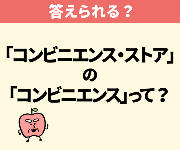 では、この「コンビニエンス・ストア」という言葉。英語の「convenience」をカタカナにしたものですが、これを日本語に直訳すると、一体どんな意味になるかご存じでしょうか?