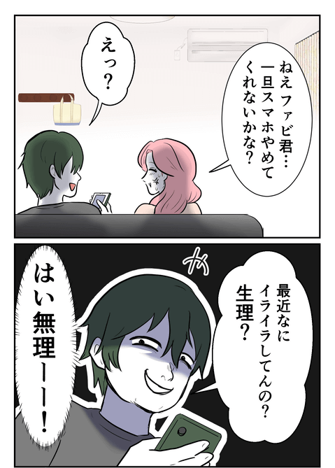 【漫画】「スマホやめて」→「なにイライラしてんの?生理(ニヤニヤ)」はい!この彼氏、もう無理〜〜!!!【ファビングされて別れました②】