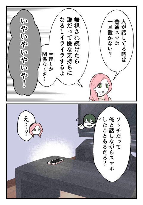 前回、「スマホを一旦やめて」と言ったサクラに、「なにイライラしてんの?生理?(ニヤニヤ)」と反応したファビオ君(もうその返事が無理っ!)。