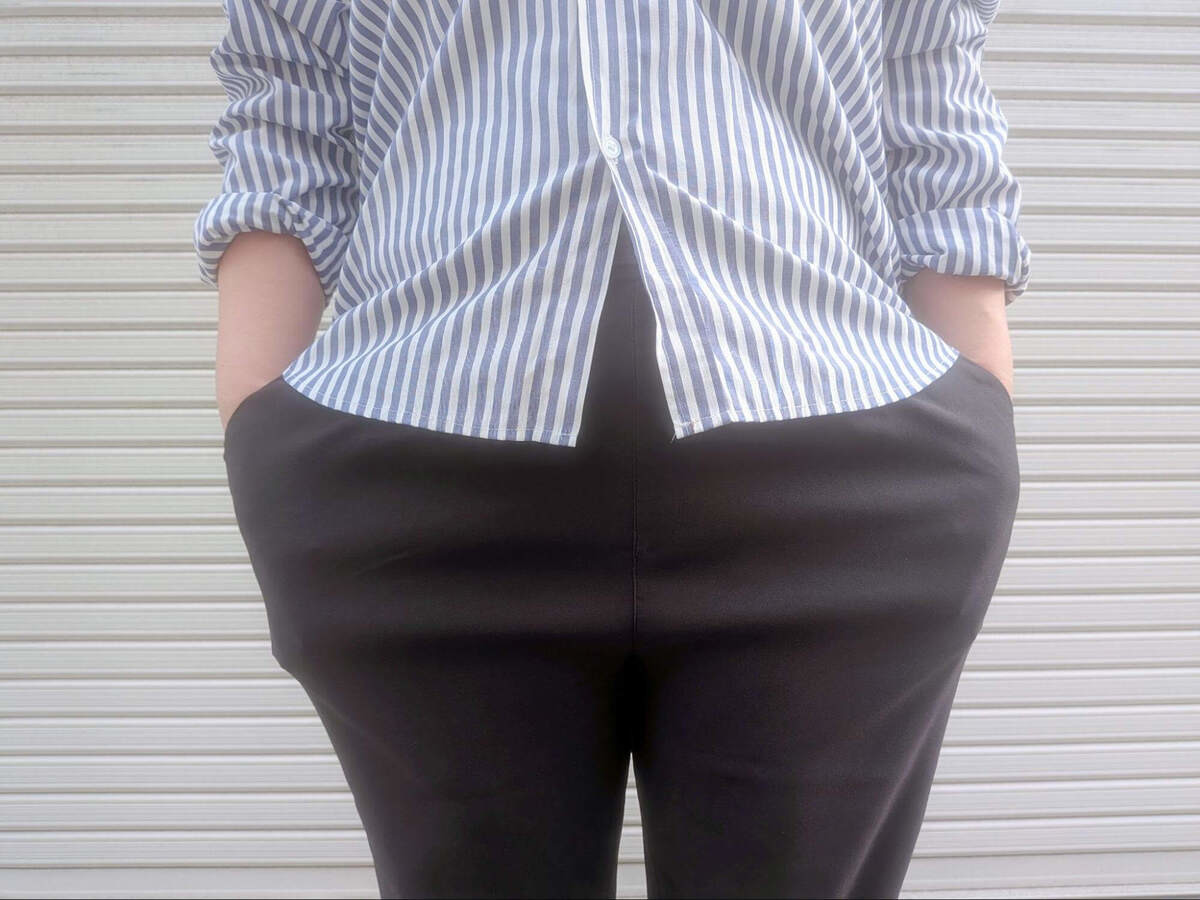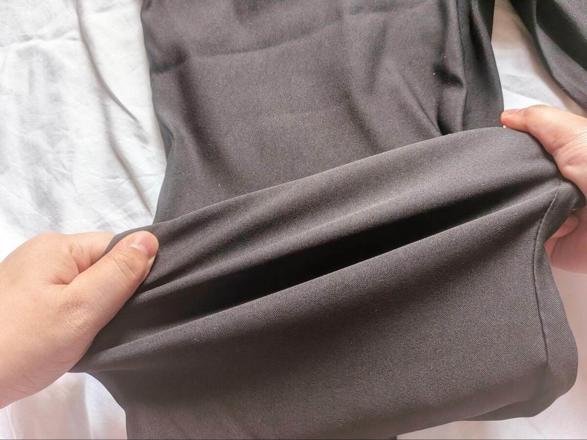 安価だとチープに見えないか心配ですが、NOBIRUNOパンツはペラペラ感ゼロ。ほどよい厚みの生地で、この価格帯とは思えないほどしっかりしています。
