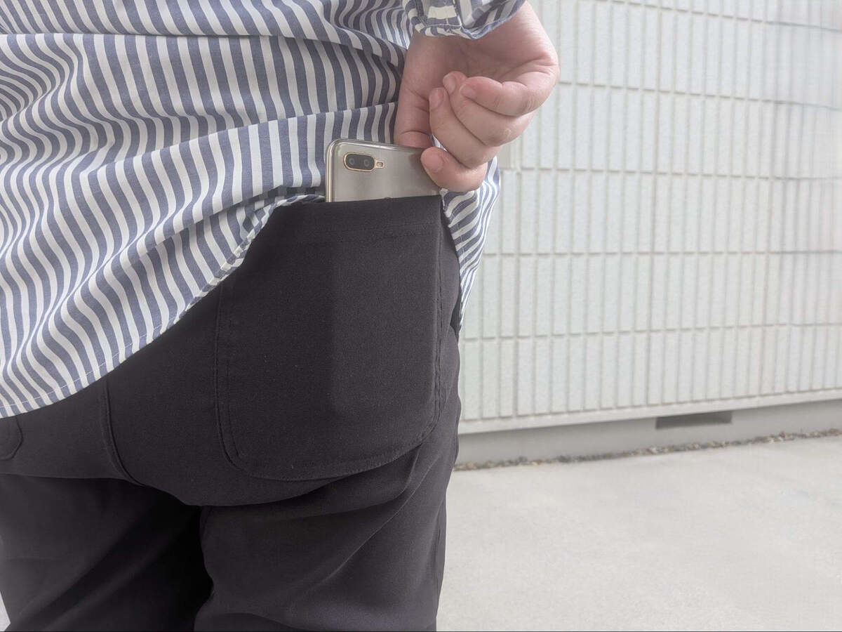 ヒップポケットも深めに作られていて、スマホもすっぽり。近所のコンビニくらいなら、スマホと財布を入れて手ぶらでいけます!