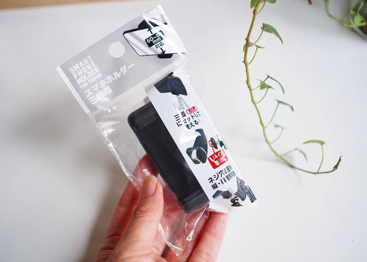 理由:三脚とスマホを組み合わせられて撮影に便利!110円なのでお手軽です。